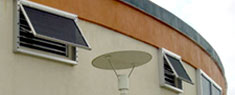 Bahama Mount - Unlike conventional Bahama shutters, STORM SHIELD's Bahama shutter design allows a high ratio of light transmittance. The unit quickly retracts and locks into place with four easy push pins. This inplace shutter is also a practical system for multi-story properties. More info... |